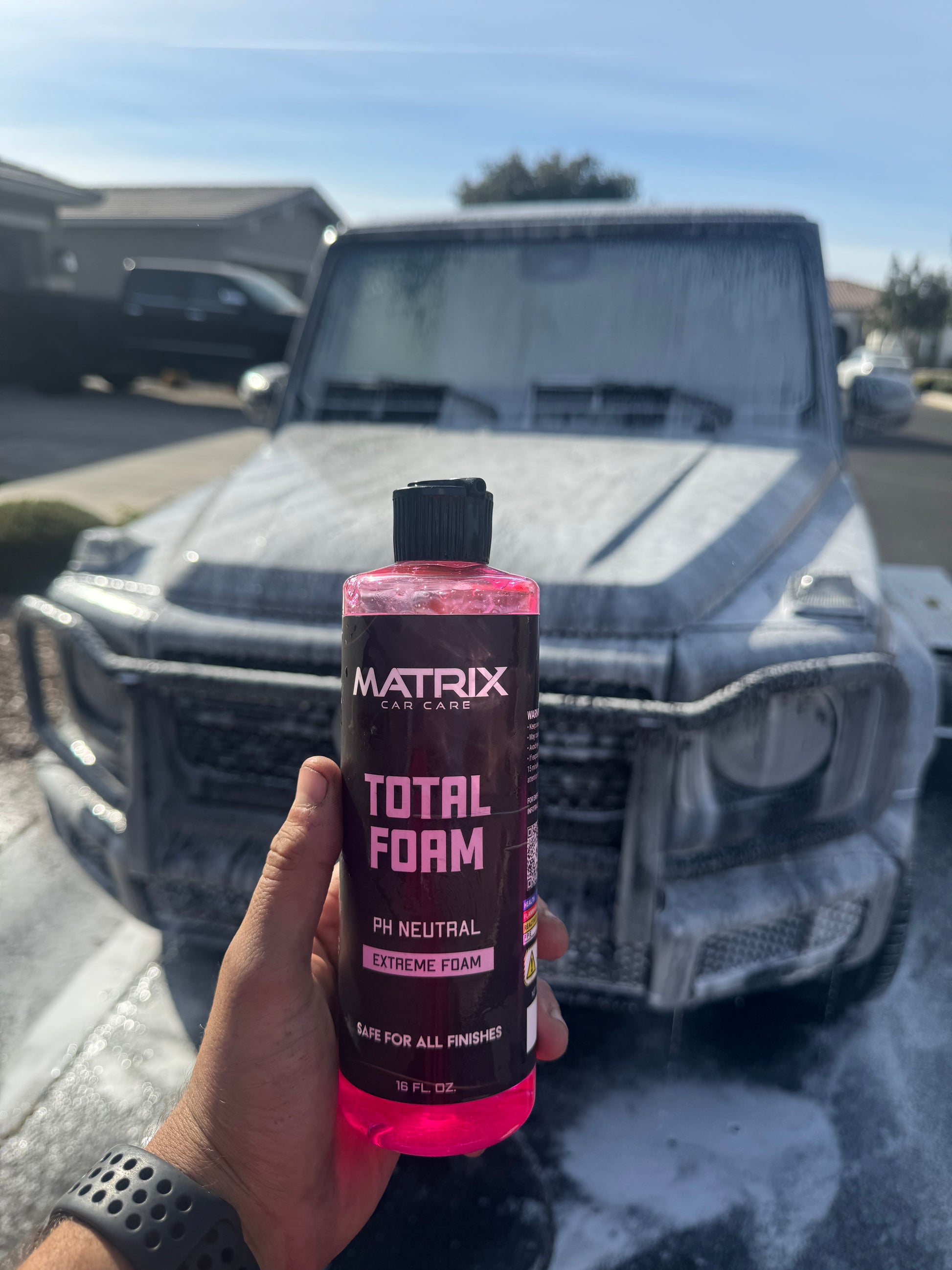 We named it total foam for a reason, Because it is literally total foam and foam only. Our thickest and best smelling cherry scented formula designed to penetrate the dirt and grime on the surface of your vehicles paint but also keep a thick foamy surface, so you’re not scratching it when you’re washing it the perfect formulation of pure total foam.
